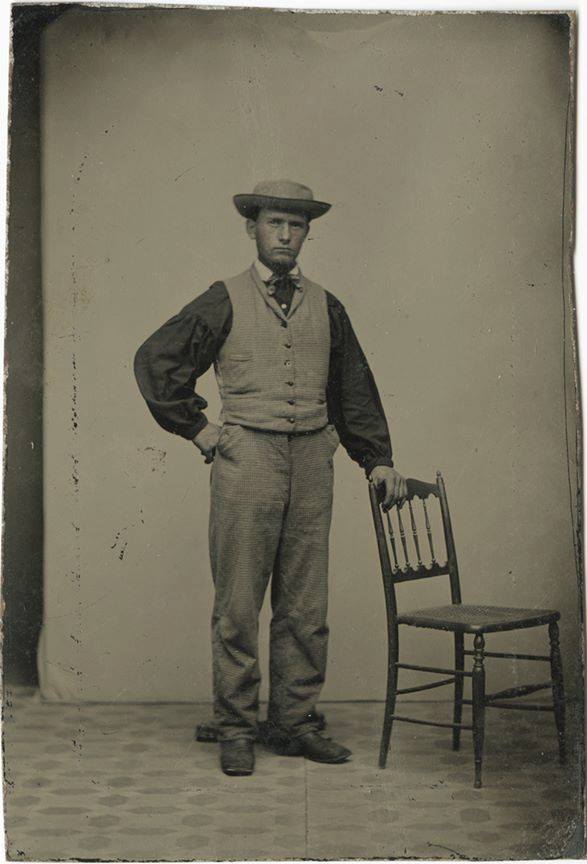 Tintype Private collection of Jack and Beverly Wilgus The back of this tintype has a partial three cent revenue stamp, which tells us that it was made during the Civil War period between April 1864 through August 1866 when this type of revenue stamp was repealed.