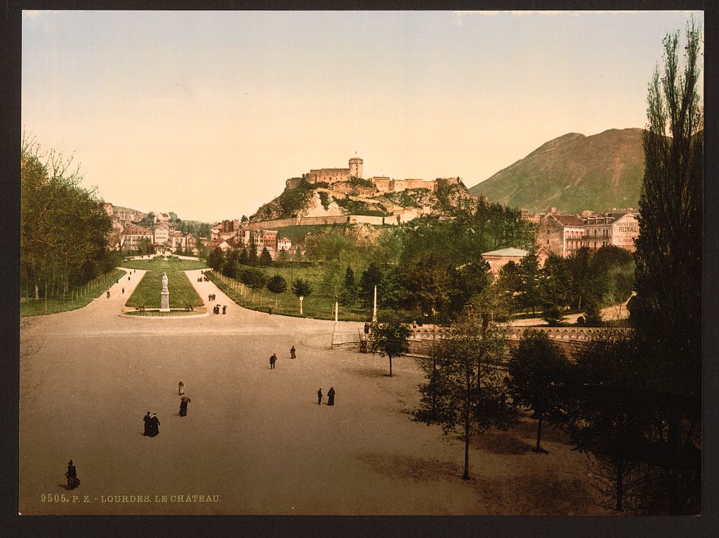 [Castle from terrace of Notre Dame de Lourdes, Lourdes, Pyrenees, France]