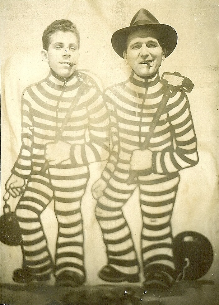 Portrait of two men with a "New Orleans City Jail" themed foreground