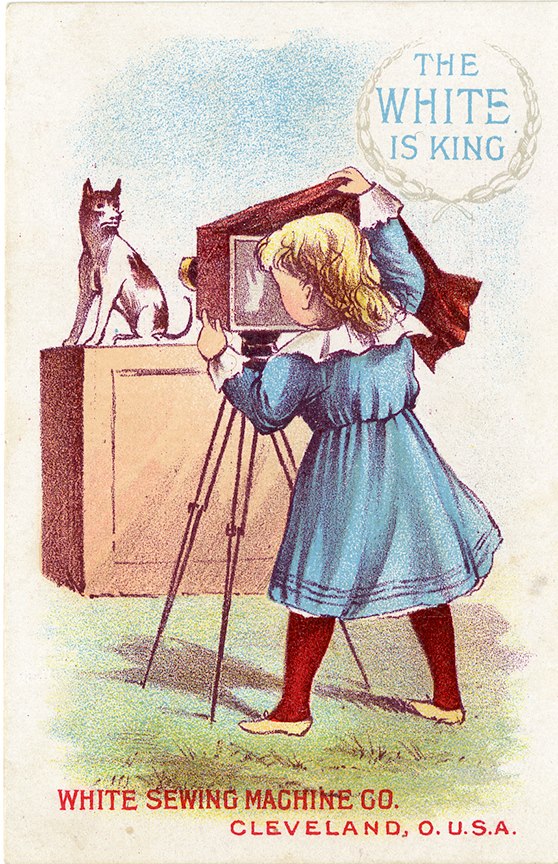 "The White is King" [A trade card for the White Sewing Machine Co., Cleveland, O. U.S.A.]