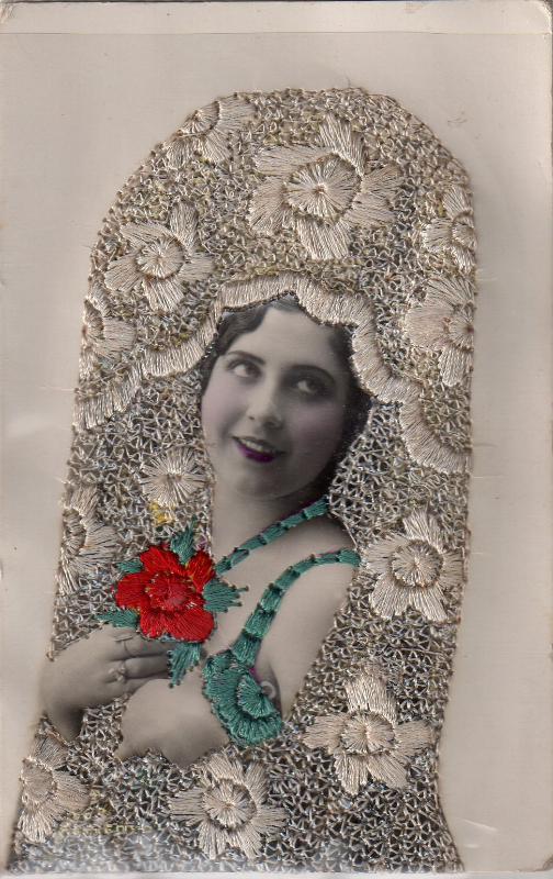 Postcard, with embroidery