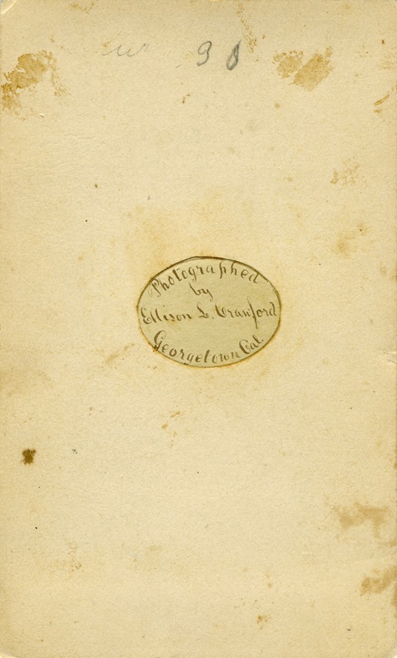 Handwritten imprint for "Ellison L. Crawford, Georgetown, Cal."