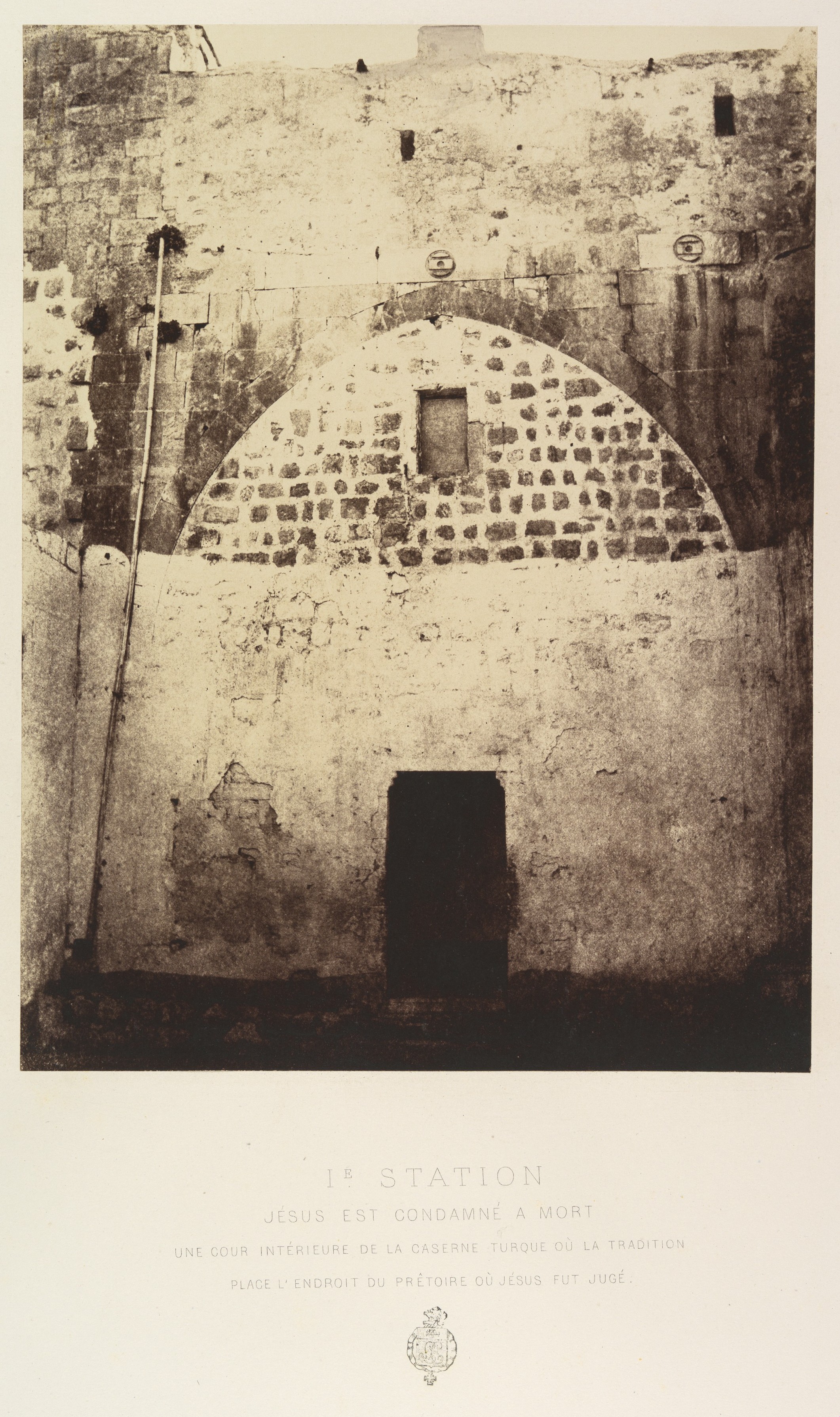 Ie Station. Jésus est condamné à mort. Une cour intérieure de la caserne turque où la tradition place l'endroit du prêtoire où Jésus fut jugé