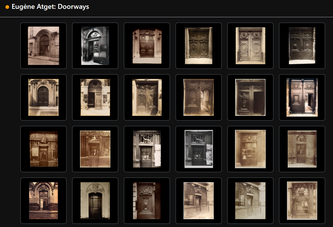 Screenshot of "Eugène Atget: Doorways" on LINC (Luminous-Lint International Network of Connections)