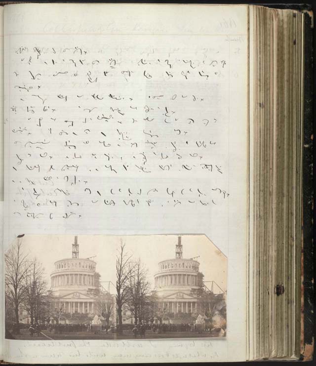 A page from the Pitman shorthand journal of Montgomery Meigs on the inauguration of President Lincoln, Washington, DC