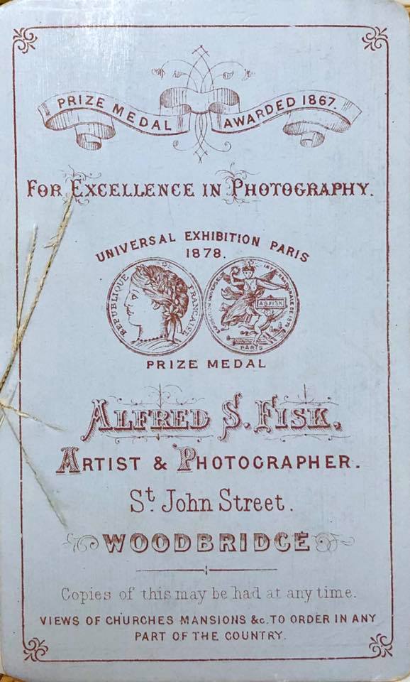 Backmark for "Alfred S. Fisk, Artist & Photographer, St. John Street, Woodbridge"