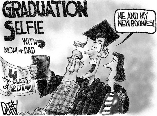 Graduation Selfie with Mom & Dad - "Me and my new roomies"