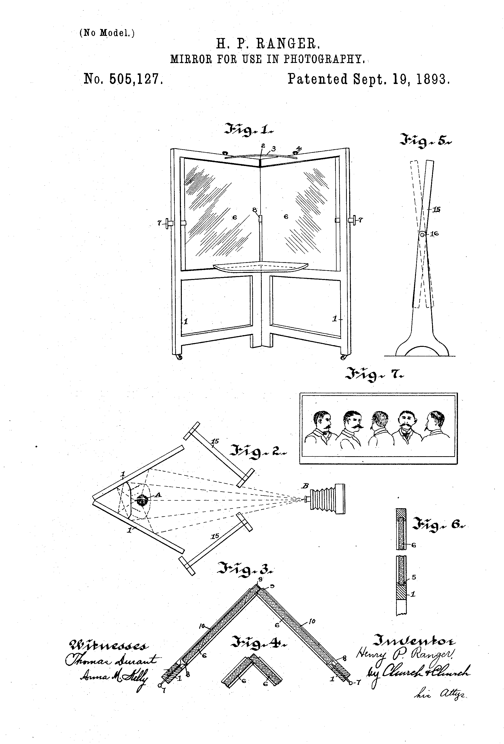 Patent illustration for "Mirror for use in Photography" (US Patent no. 505,127)