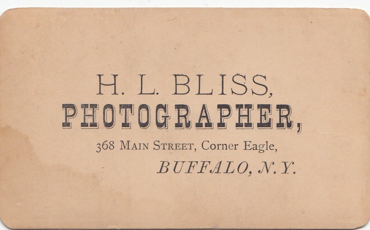 Backmark for "H.L. Bliss, Photographer, 368 Main Street, Corner Eagle, Buffalo, N.Y."
