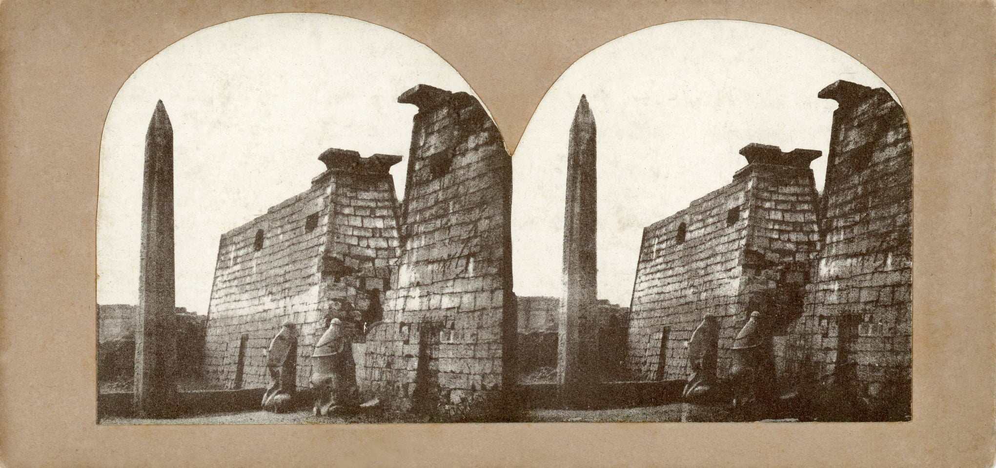 Langenheim, Lloyd & Co. 1858-1860 (ca) The Entrance to the Great Temple at Luxor. Showing the Beautiful Granite Obelisk of Rameses the Great, and two of the half-buried and Mutilated Colossi which stand before the Great Pylon. [Views in Egypt and Nubia]
