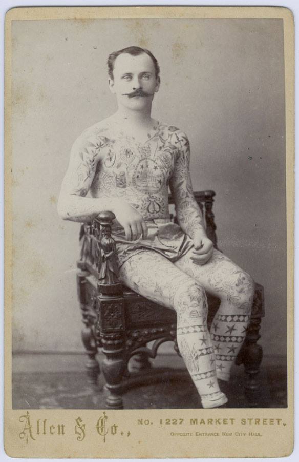Studio portrait of a tattooed man