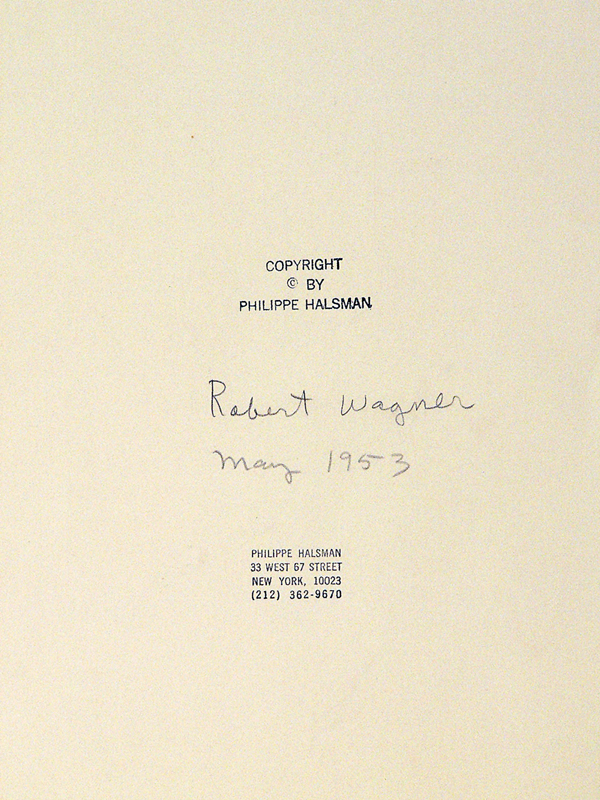 Halsman's credit stamp and 33 West 57th Street address stamp, and "Robert Wagner/ May 1953" in pencil on verso. This was at the start of Wagner's major film career. This print probably printed c. 1965 or earlier.