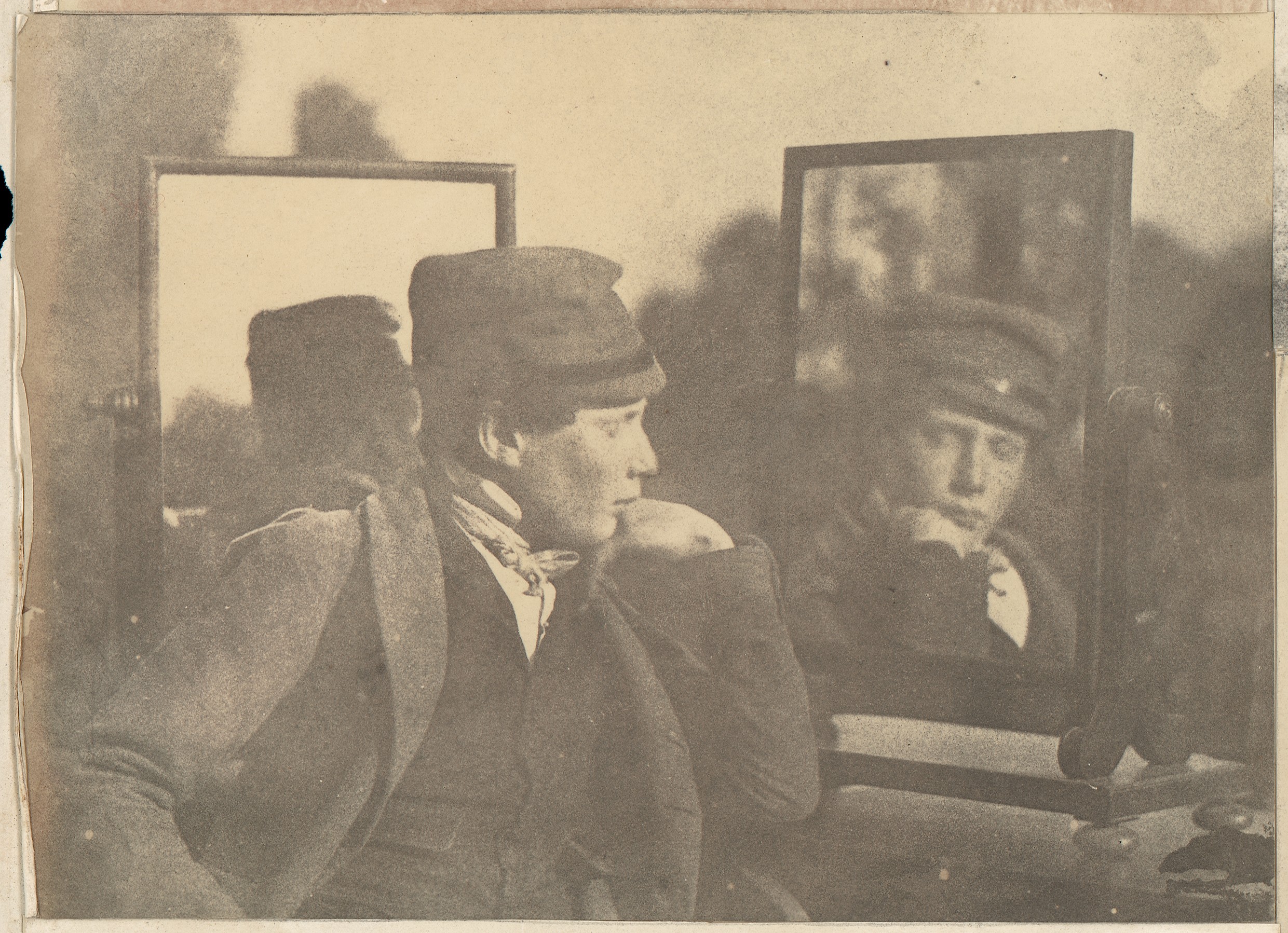[Boy in Profile, Face Shown Frontally in Mirror]