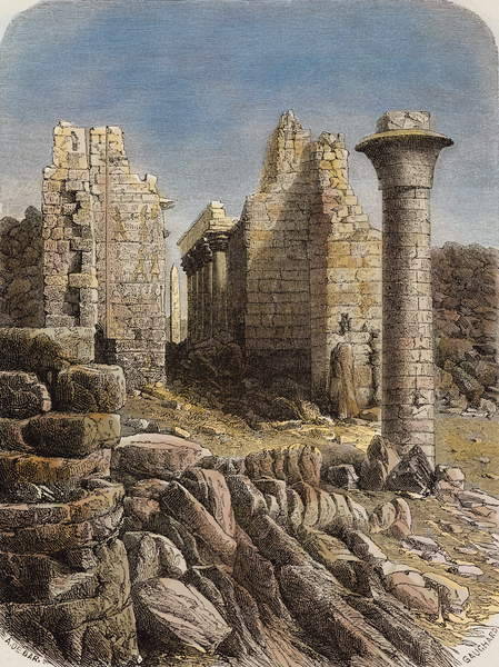 This magazine illustration was based on Henry Cammas, "Column and Obelisk from the Temple of Amon, Karnak," 1860 (taken) 1862 (ca, print), J. Paul Getty Museum, Object Number: 84.XM.1016.17