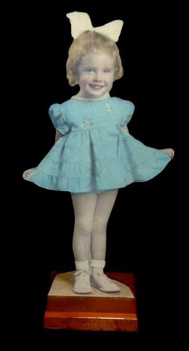 Cut out coloured photograph on base Private collection of Jack and Beverly Wilgus Sculptures of this type could be obtained by mail order and are similar to the Mexican "fotoescultura."