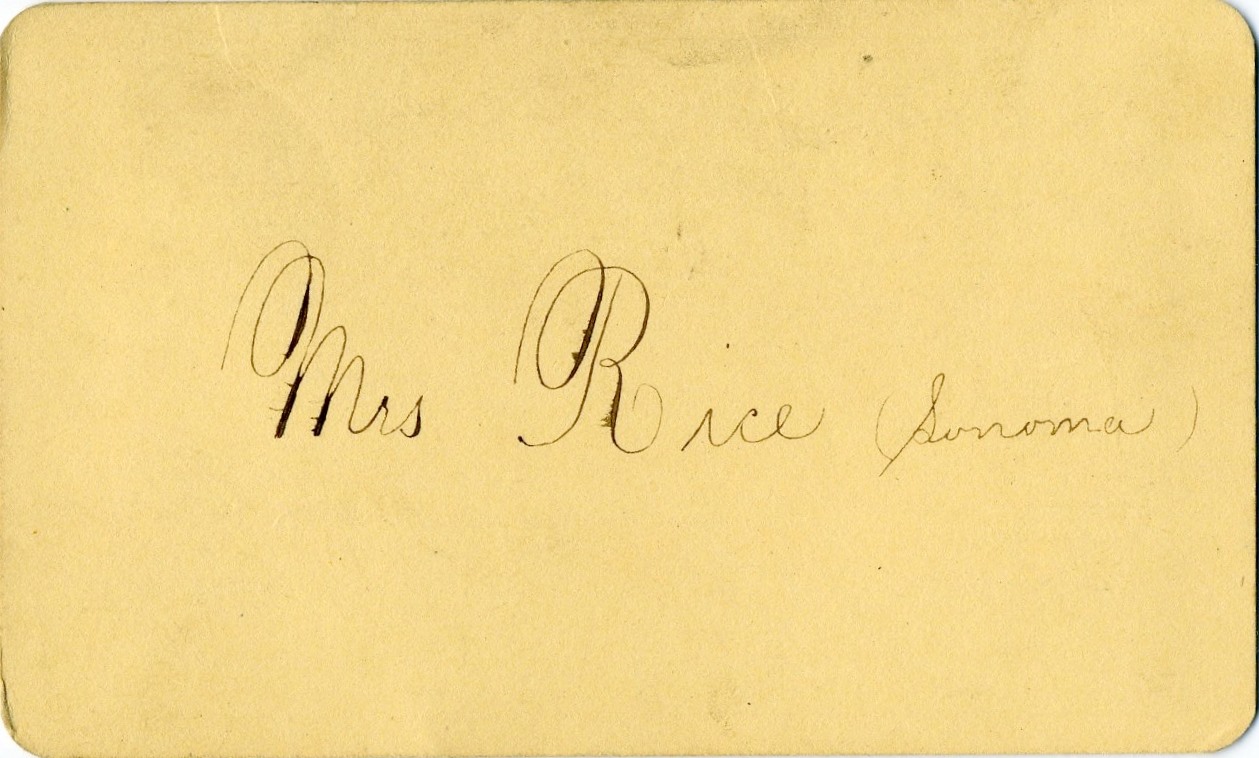 Handwritten backmark for "Mrs Rice (Sonoma)"