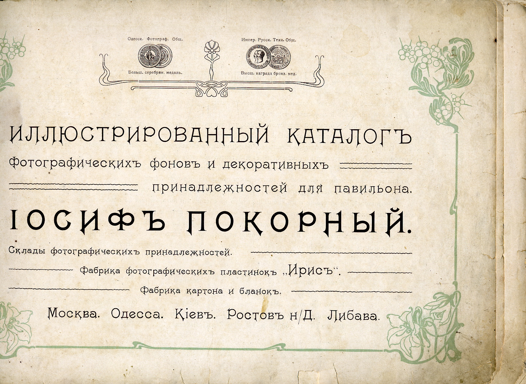 A page from the photographic supply catalog of Joseph Pokorny (Russia)