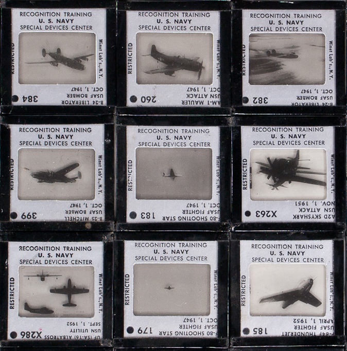 35mm positive slides, printed alloy mask and glass covers and black tape binding