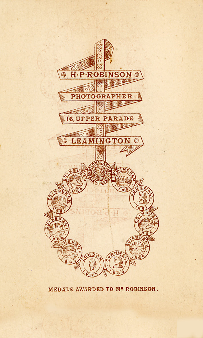 Backmark for "H.P. Robinson, Photographer, 16 Upper Parade, Leamington"
