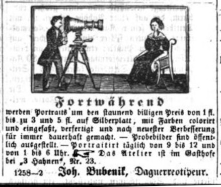 Without interruption, portraits are carried out at a surprisingly modest price of 1FL up to 3 and 5 Fl on silver plate, colored and framed, made according to the new discoveries so that they last forever. Every day from 9am to 12pm and 1pm to 4pm.