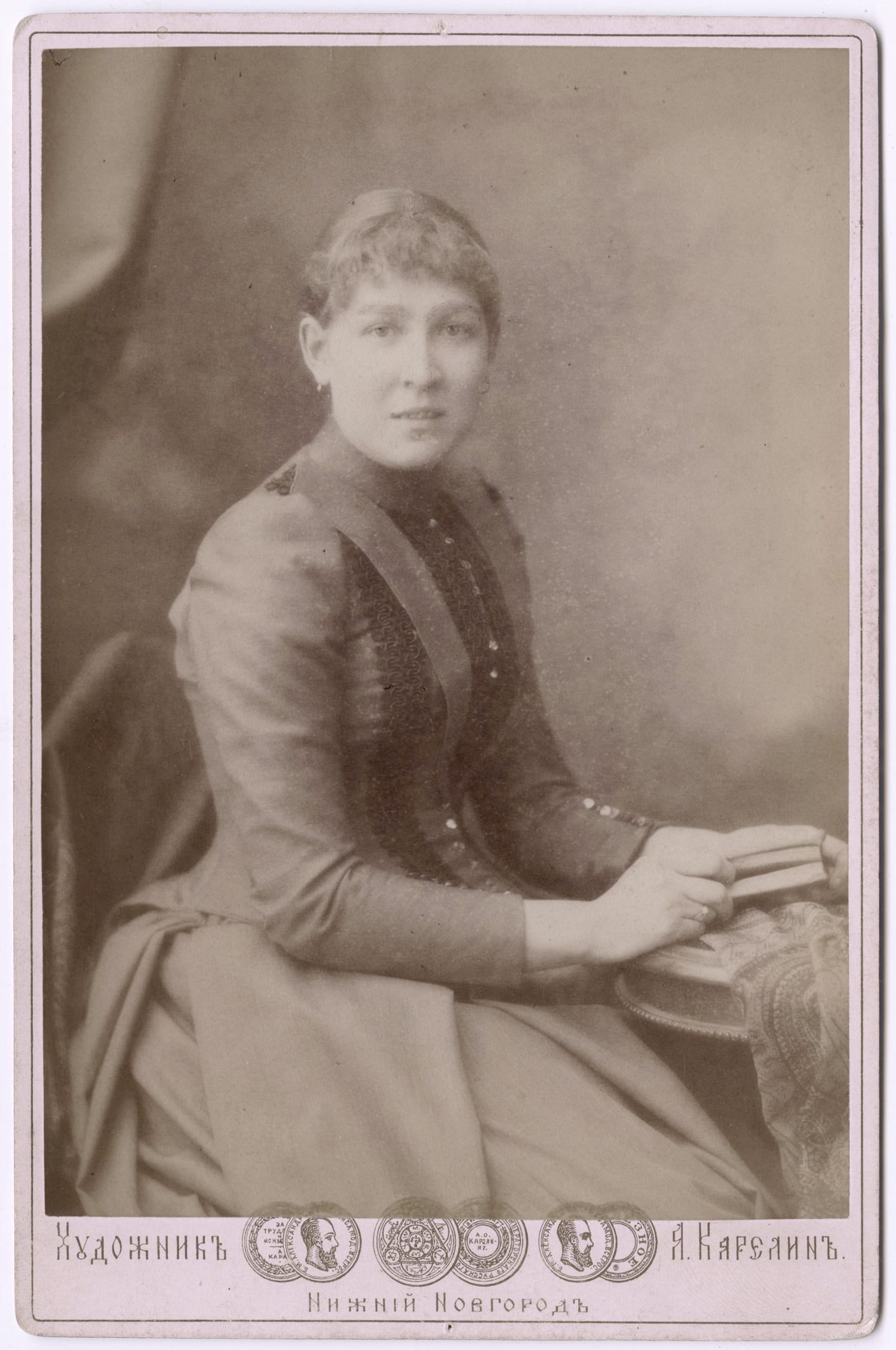 Cabinet card Private collection of Sergey Maximishin Contact printing with two sandwich-folded identical glass negatives. One of the negatives due to the geometric distance from paper gives light focus. The softness of the contours, allegedly giving pictures picturesque, was called the Denier effect, because it was the first time in Russia that was used by Andrei Denier.
