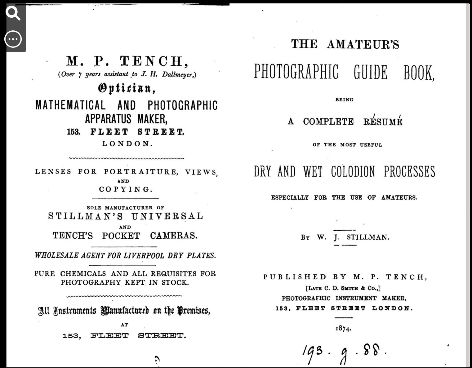 Advertising page and title page for Book cover for W.J. Stillman, 1874,