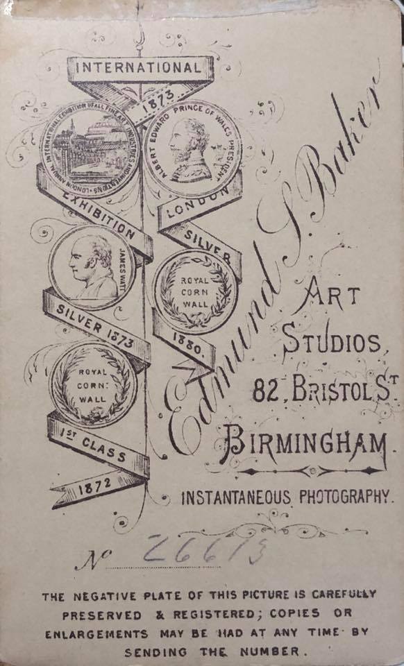 Backmark for "Edmund S. Baker, 82 Bristol St., Birmingham"
