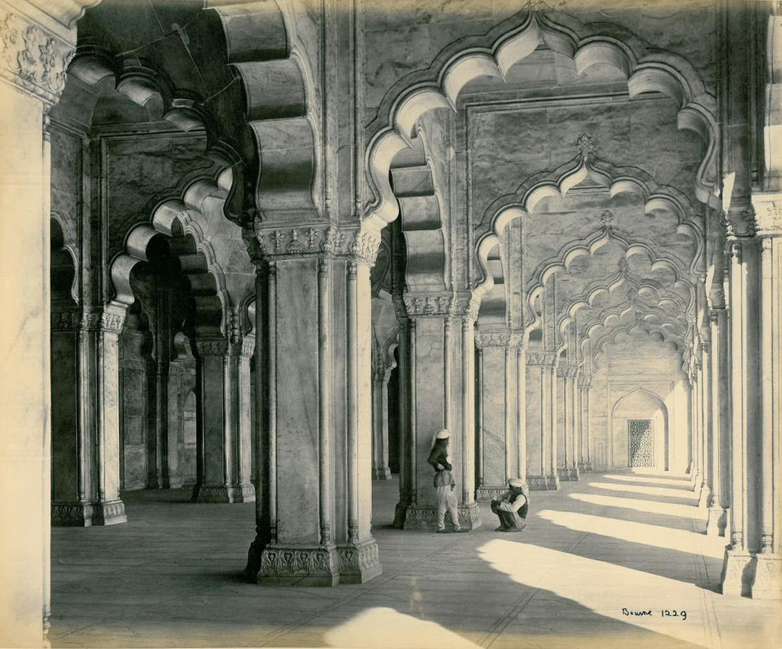 Bourne & Shepherd 1870 (album) Interior of the Motee Musjid - Fort of Agra - Stewing the Marble Saracenic Arches and Pillars