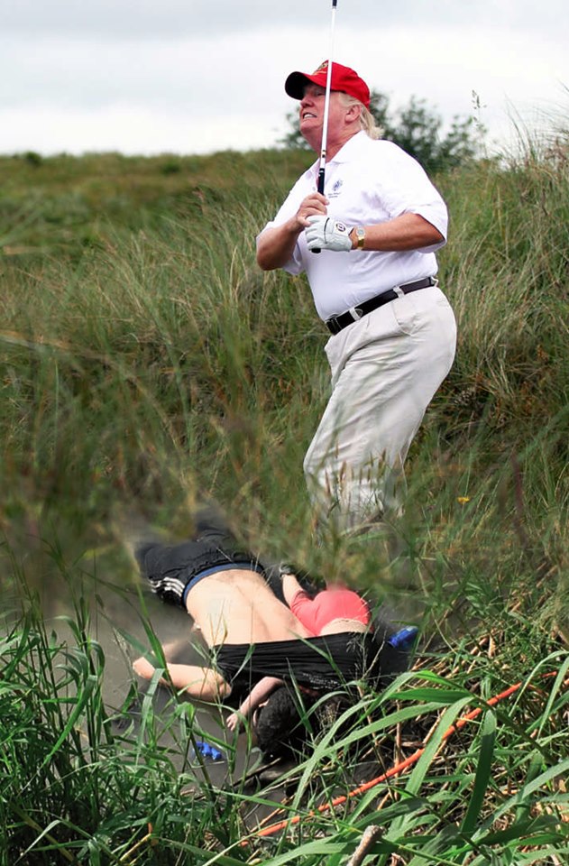 Julia Le Duc / Unidentified photographer 2019, 26 June [President Trump golfs as a father and his daughter from El Savador drowned trying to migrate to the U.S.]