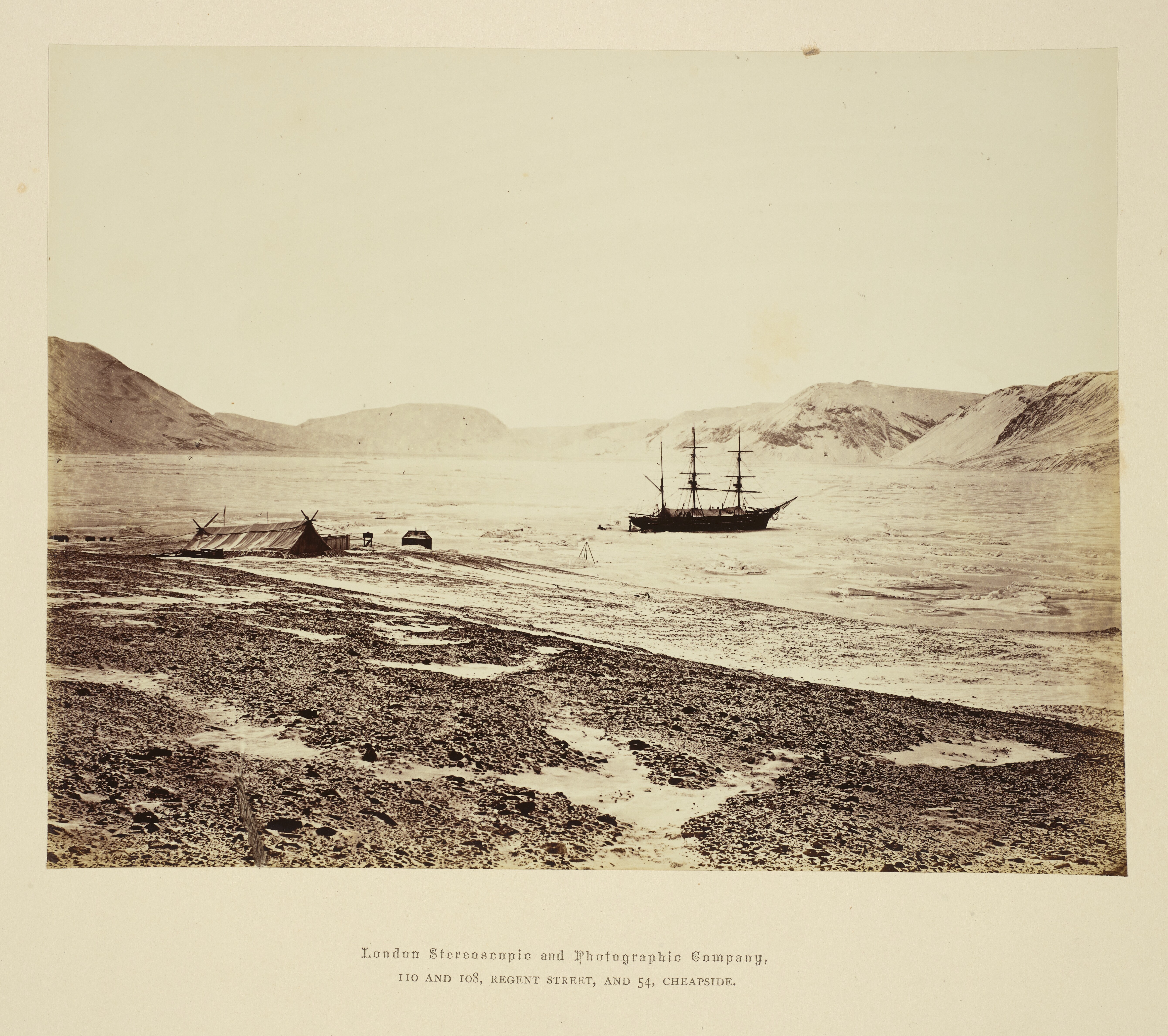(Alan Griffiths, 27 January 2026) The photographer is not given on the Det Kongelige Bibliotek (The Royal Library) website but was, based on the The Royal Collection (UK), Thomas Mitchell. He was the photographer for the British Arctic Expedition, commanded by Captain George Nares (1875-1876). He trained at the Army School of Photography in Chatham and was on the "Discovery". The photographs were shown at the Photographic Society of Great Britain exhibition in 1877. The other photographer on this expedition was George White on "Alert".