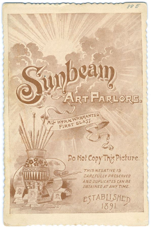 Backmark for "Sunbeam Art Parlors." with a "Do Not Copy This Picture" message