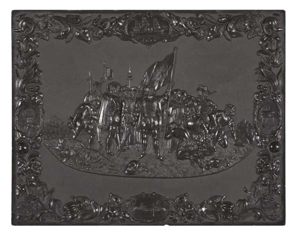 Whole-plate case with a relief depicting the highly scarce scene entitled "The Landing of Columbus"