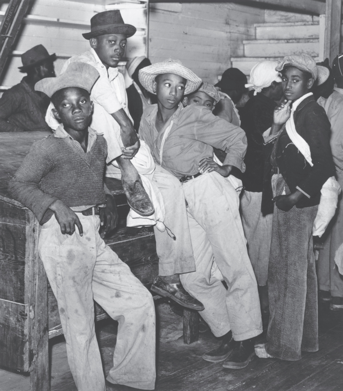 Young Boys Waiting in the Plantation Store to be Paid off for Picking Cotton, Marcella Plantation, Mileston, MS