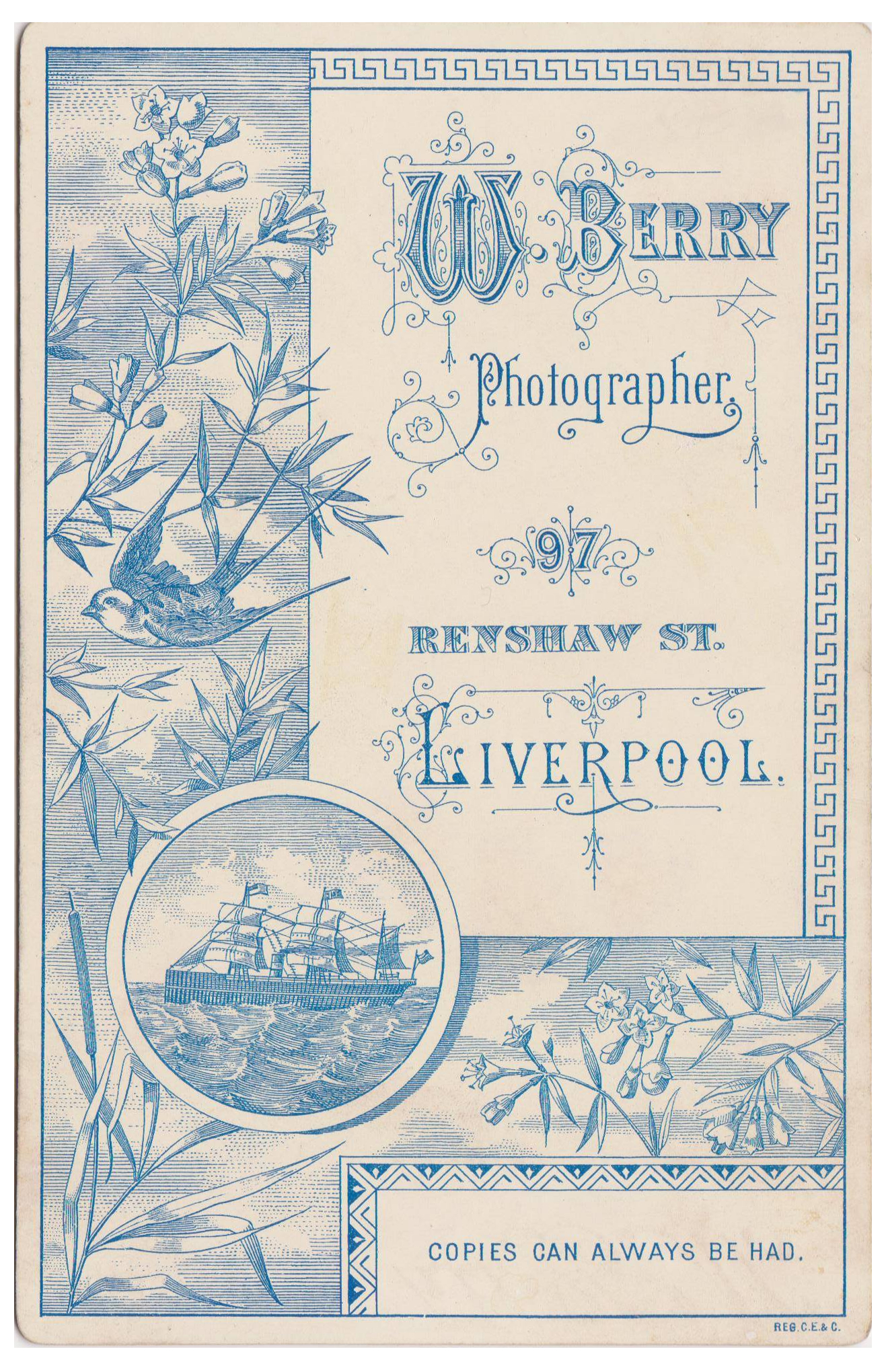 Backmark for "W. Berry, Photographer, 97 Renshaw St. Liverpool"