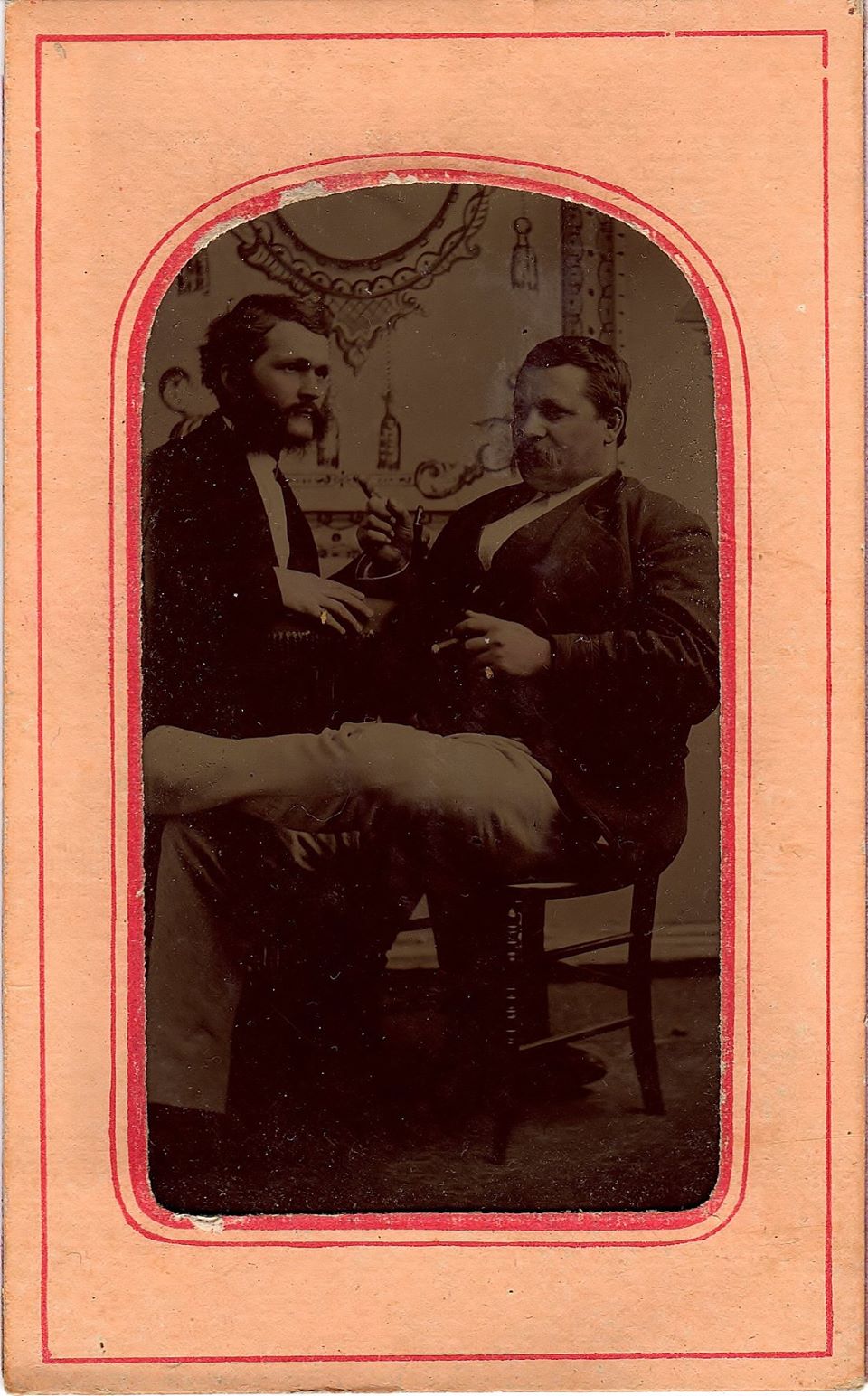 The background in this photograph is similar to that found on some of the paper sleeves used to hold tintypes.