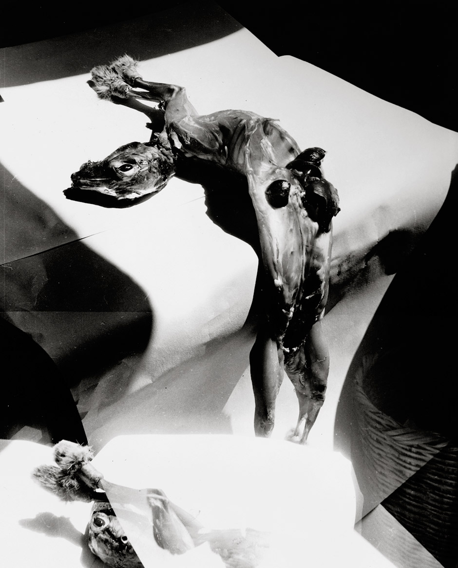These images are from the slaughterhouse series D'Ora took in Paris between 1948 - 1958. In this series she combined surrealistic elements with pure documentary photography of animal cadavers, often giving the images an unsettling quality.