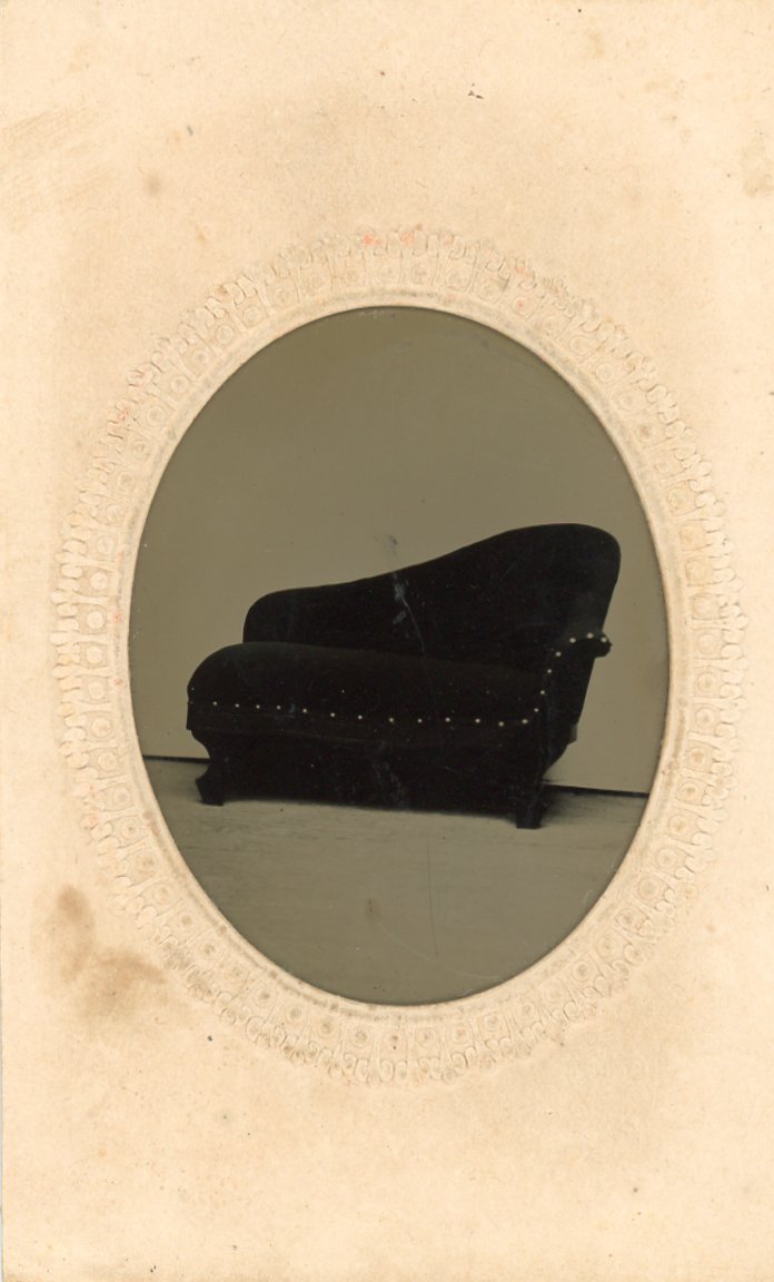 A couch [possibly a posing couch for chrildren]