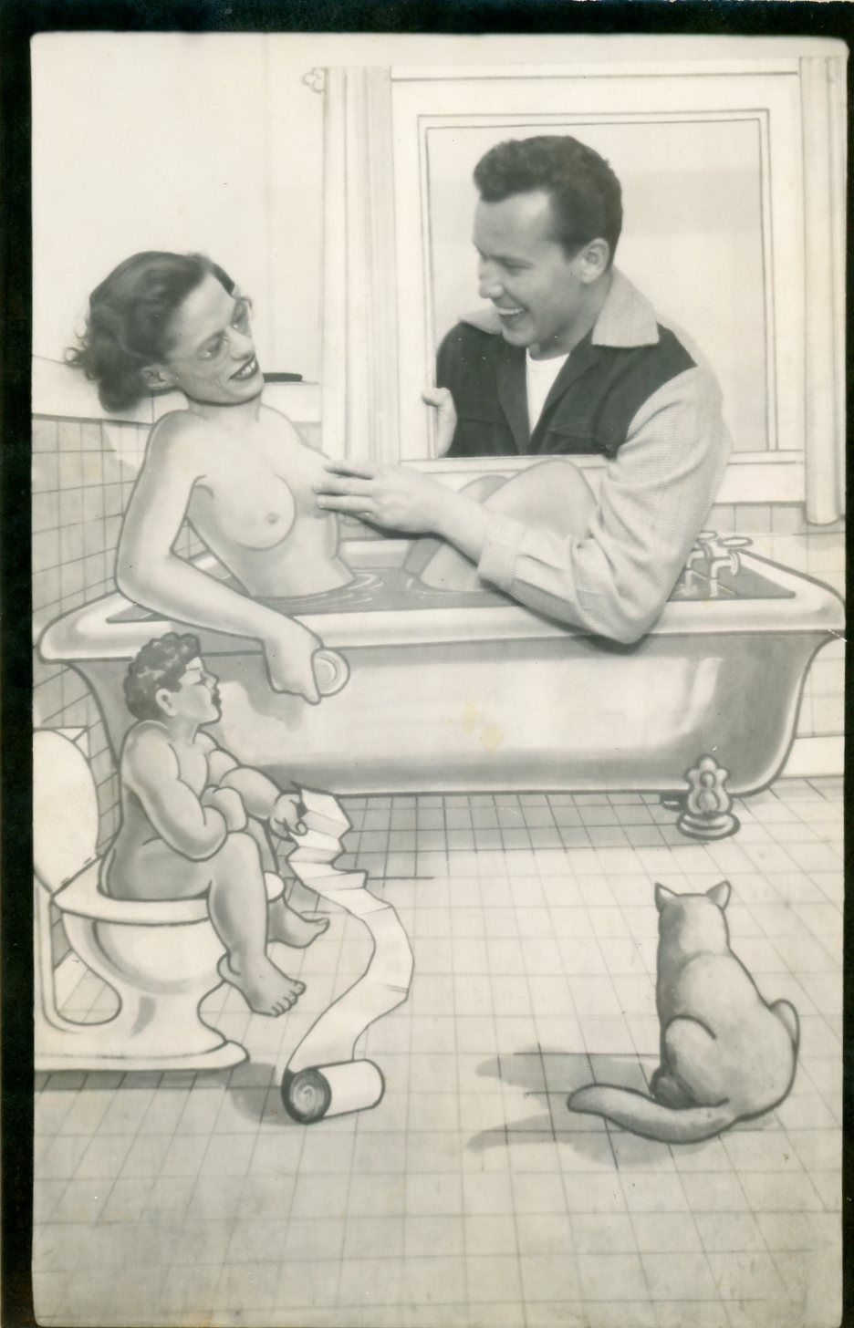 American arcade photograph of a bathroom scene