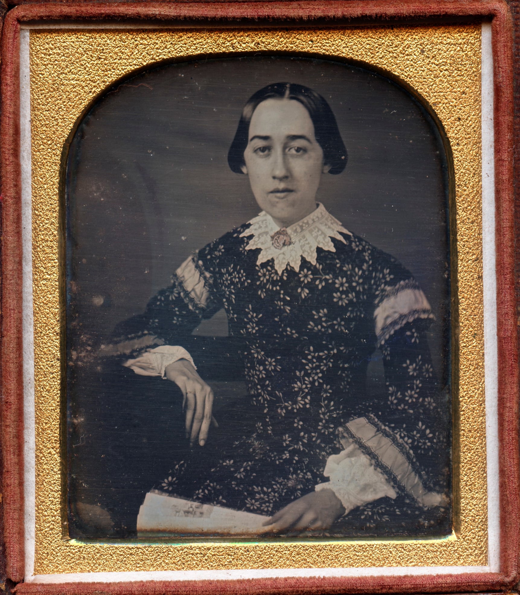 Handwritten label on verso of quarter plate: "Mrs Minerva Josephine Cates Ardis. Sister of my father Dr John William Cates & daughter of Reverend Louis & Amanda Cates." Minerva Josephine Cates Ardis (1830-1917) was born in Tennessee, was married to Abram Lucius Ardis and died in Los Angeles, CA