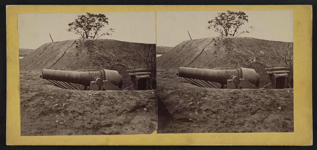 W.F. Browne 1861-1865 Same gun, as shown in no. 1020, with magazine traverse [View of Confederate Water Batteries on James River.]