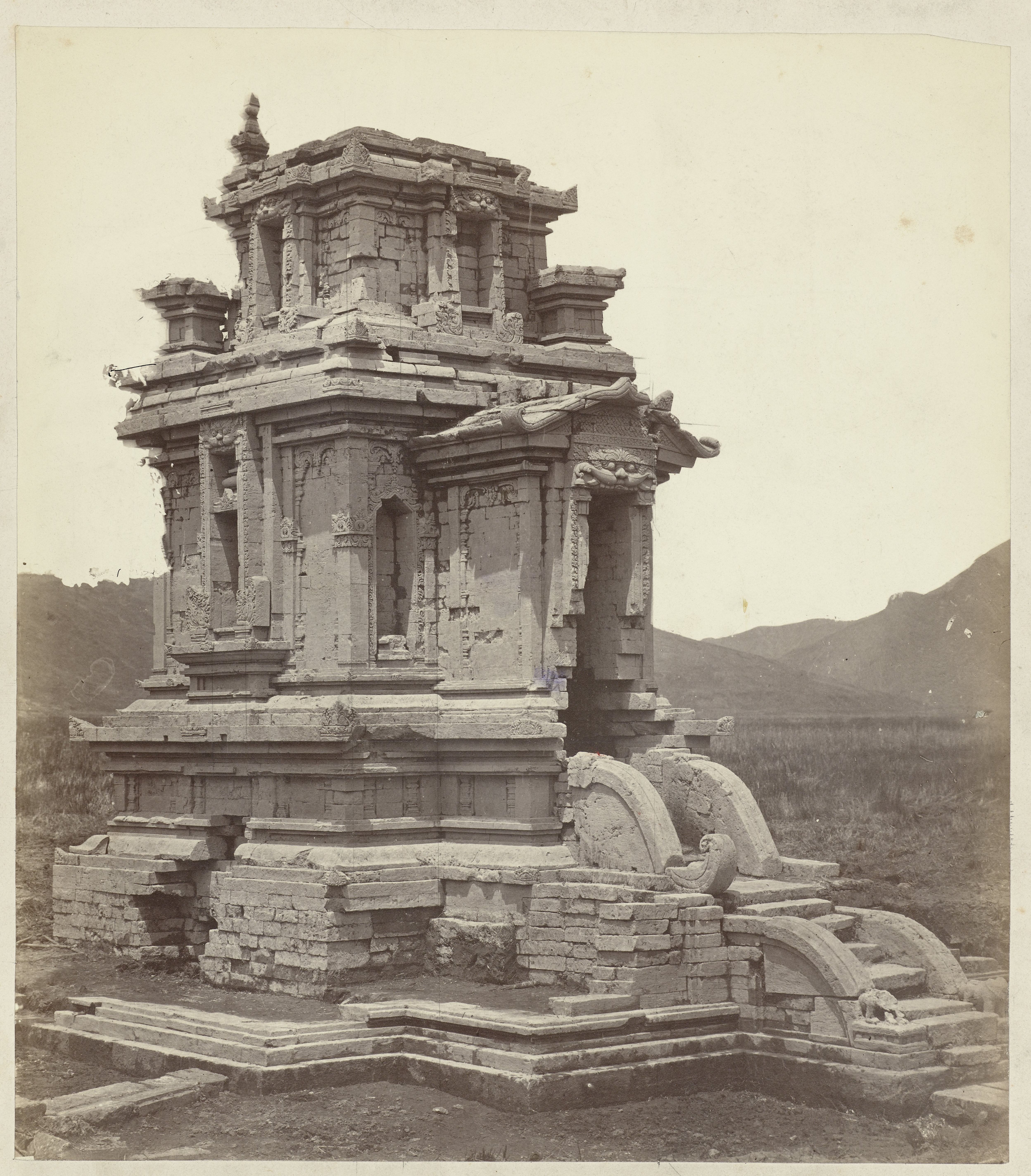 Candi Puntadewa, general view with the staircase projection (west). Dieng plateau Wonosobo district, Central Java province 8th-9th century