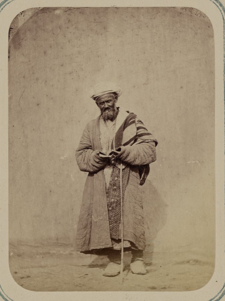 Syr Darya oblast. Ura Tiube and the types of people seen on its streets at the market square. Mendicant