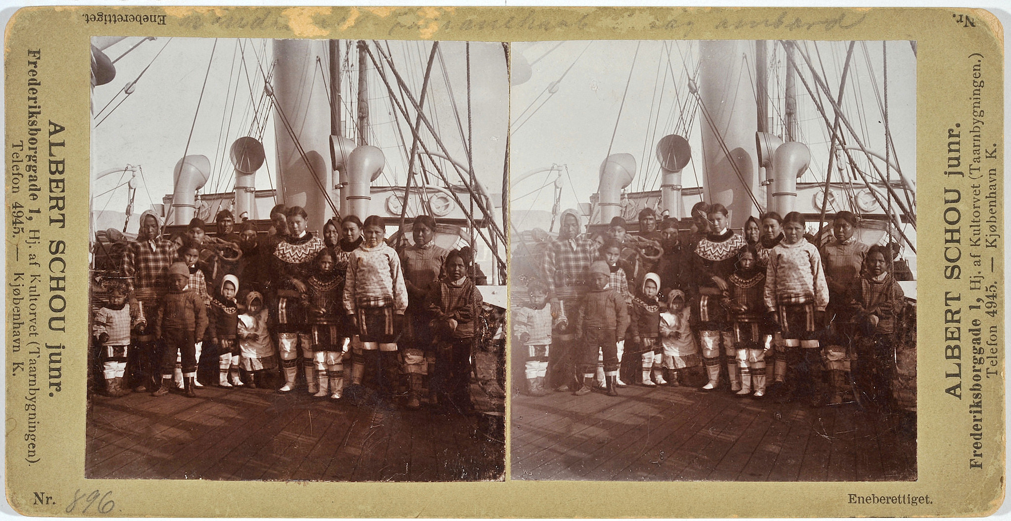 #896[Arctic expedition photograph showing Inuit on the deck of a ship]