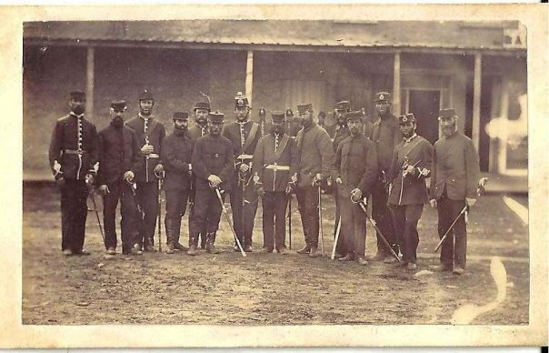 Outdoor view of a Canadian military group in various uniforms, Location unknown