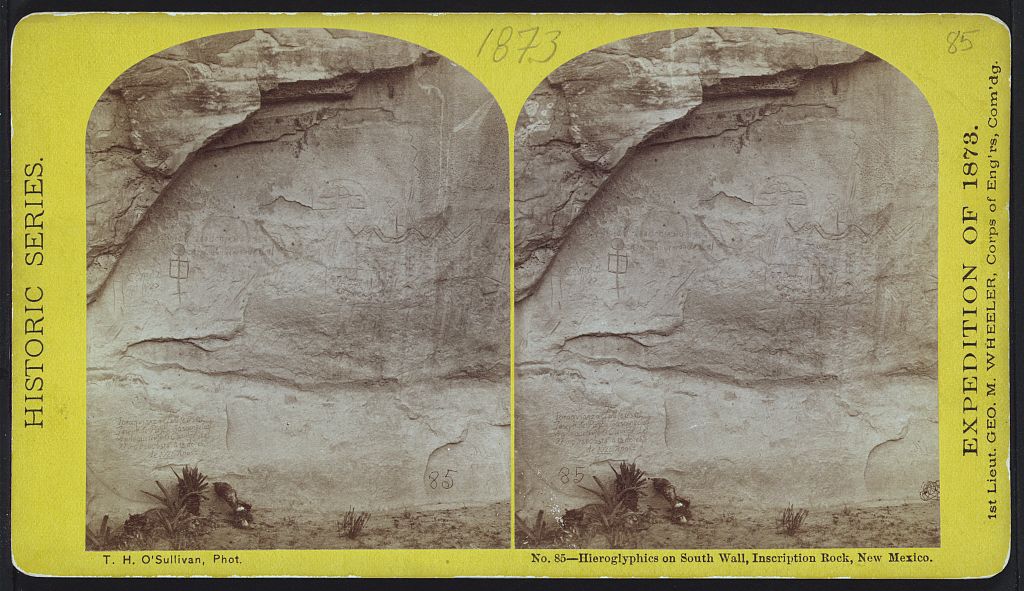 Timothy H. O'Sullivan 1873 Hieroglyphics on south wall, Inscription Rock, New Mexico. [U.S. War Dept., Corps of Engineers; Geographical Explorations and Surveys West of 100th Meridian, Expedition of 1873; Lieut. Geo. M. Wheeler, commanding.]