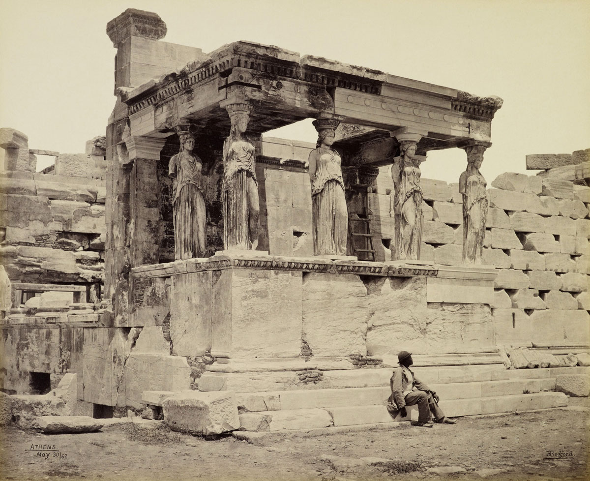 "After leaving Constantinople, the royal party sailed to Athens. Their first stop upon arrival was to visit the King and Queen of Greece. They then spent two days sightseeing and shopping before rejoining the Royal Yacht. The Erechtheum, set on the Acropolis, is a Greek temple probably built between 421 and 406 BC. The figures of six maidens (the 'caryatids') are used to support the porch."