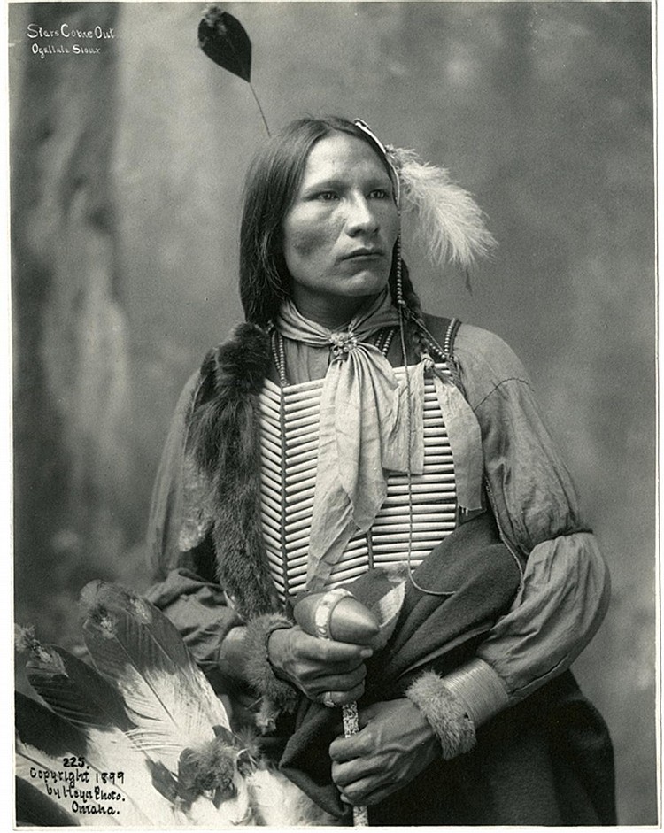 With hand written title in the upper left in the negative, No. "225" and Copyright signed in the negative lower right. Heyn, along with Rinehart, made beautiful platinum print portraits of Indians who were set up at the St. Louis Worlds Fair, celebrating the Louisiana Purchase. The subject wears a hair pipe breastplate. One feather hangs down from his hair. The handsome face of this image was made into a Rookwood vase soon after by Olga Geneva Reed (1874 - 1955).