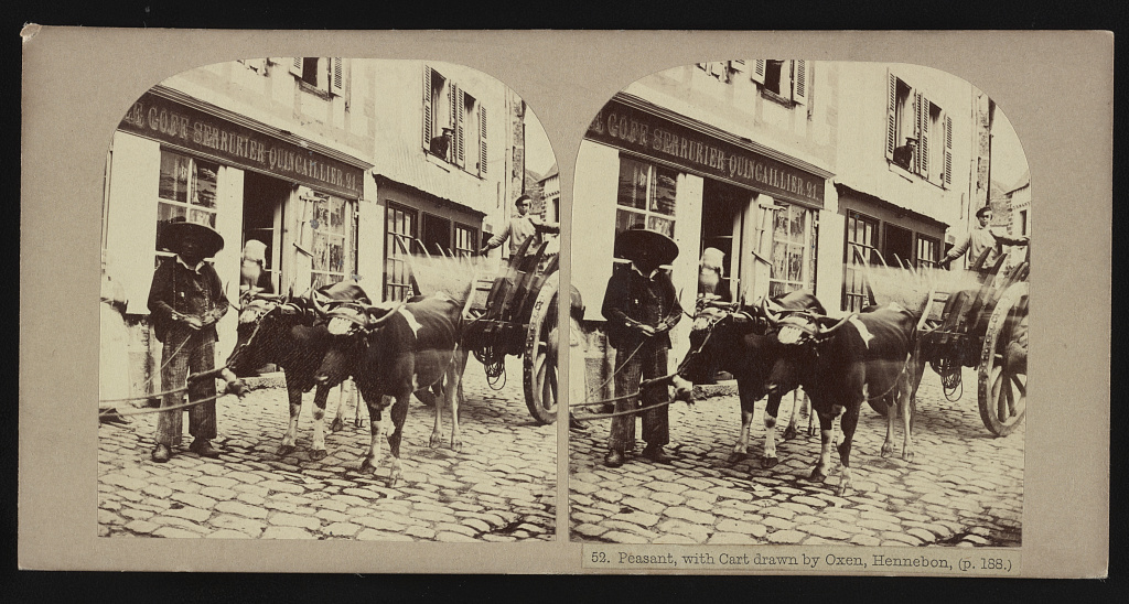 Peasant, with cart drawn by oxen, Hennebon, (p. 188.)