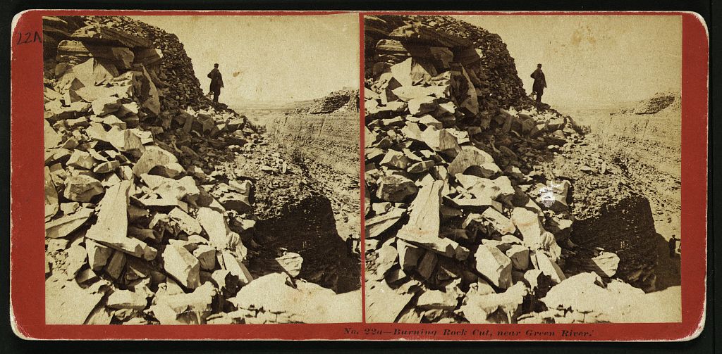 A.J. Russell 1868-1870 Burning Rock Cut, near Green River [Union Pacific R.R. views, across the continent, west from Omaha.]