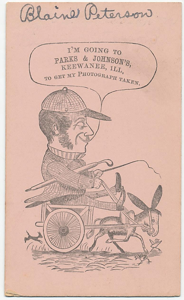 Backmark "I'm going to Parks & Johnson's, Keewanee, Ill, To Get My Photograph Taken"